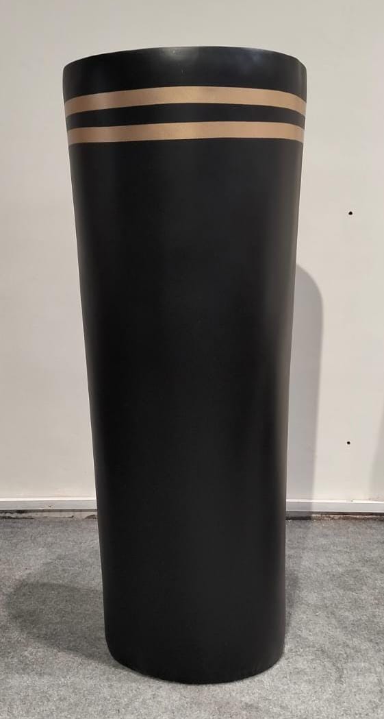 Crafted from lightweight, durable fiber, the FP-07 combines practicality with elegance. The matte black finish is elevated by dual gold accent stripes, adding a luxurious detail that fits beautifully in upscale living rooms, hotel lobbies, corporate offices, or high-end retail spaces.
