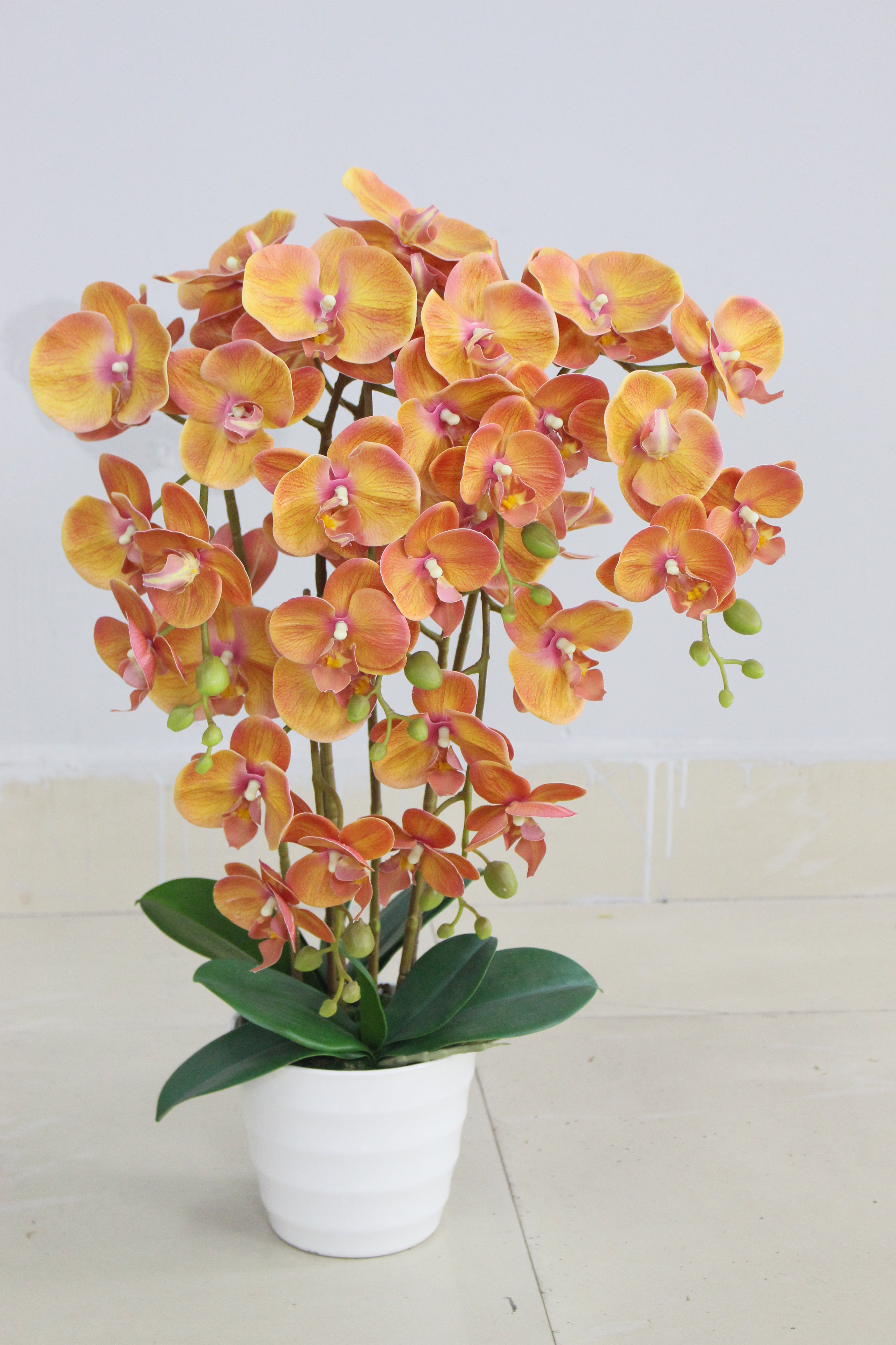 Complementing the PEVA leaves is the PE trunk, carefully crafted to emulate the elegant curves and visual intricacies of a real orchid stem. Made from polyethylene (PE), the trunk adds a lifelike touch to the overall presentation. Its realistic coloring and natural-looking texture make it difficult to distinguish from a live orchid plant.