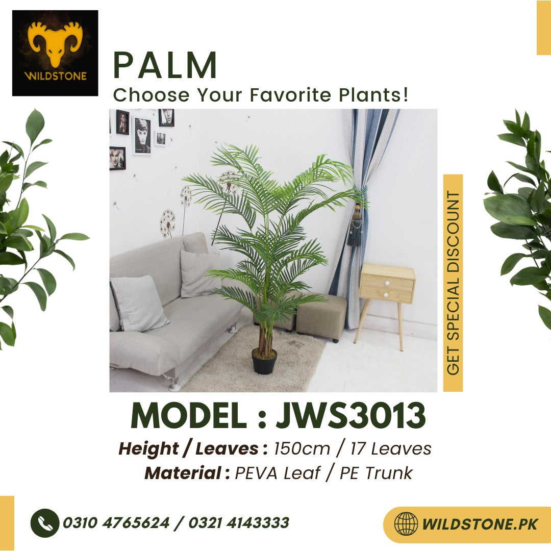 The JWS3013 features 17 leaves made from high-quality PEVA material, meticulously designed to replicate the natural texture and vibrant green color of real palm leaves. Each leaf is intricately shaped and arranged to capture the graceful curvature and delicate details that are characteristic of palm foliage. The PEVA leaves not only provide a lifelike appearance but also ensure durability, allowing the plant to maintain its beauty over time.