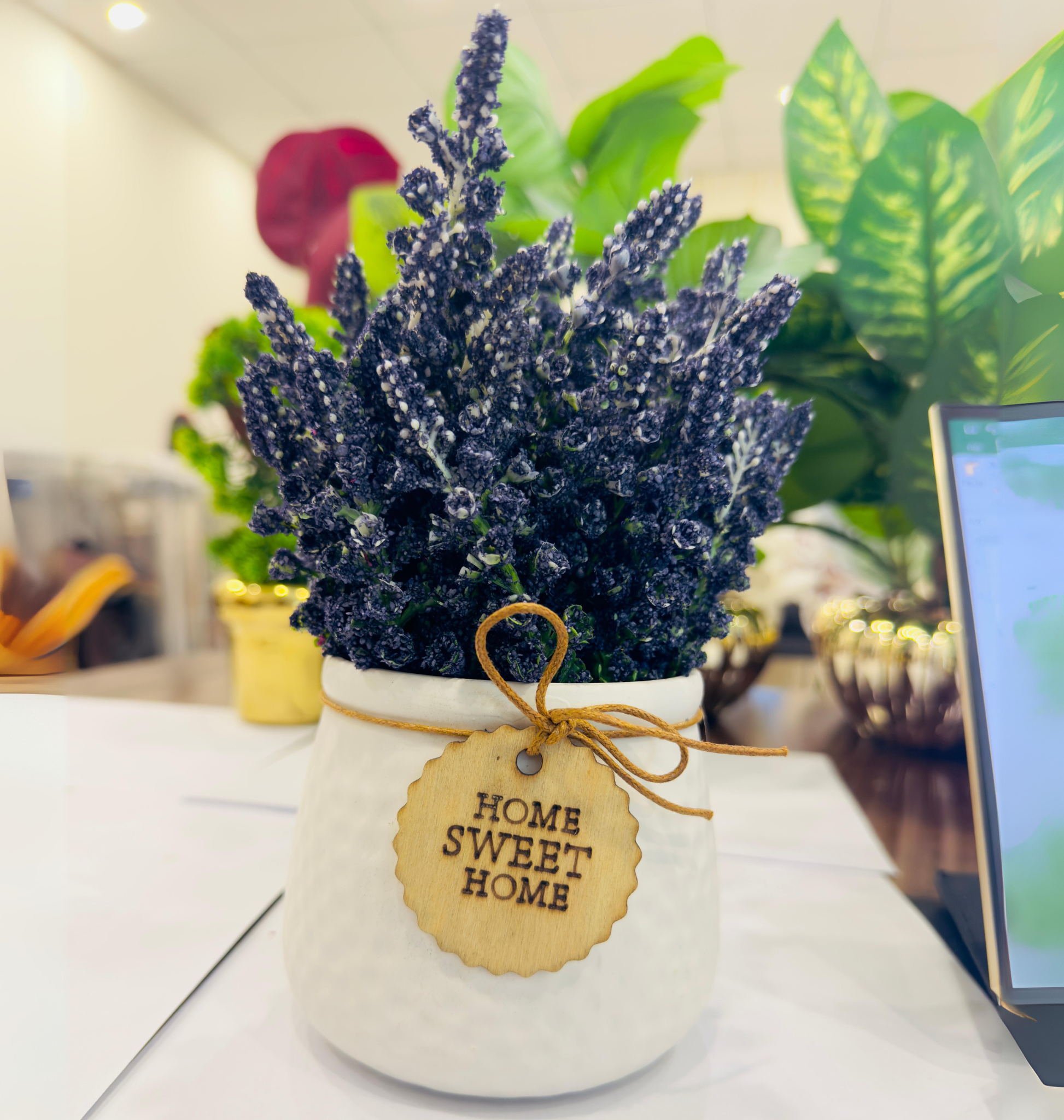 The intricate details of the lavender flowers provide a realistic look without the need for maintenance, making it an ideal choice for busy spaces. Its compact size fits perfectly on desks, shelves, or side tables, adding a subtle yet charming touch of nature.